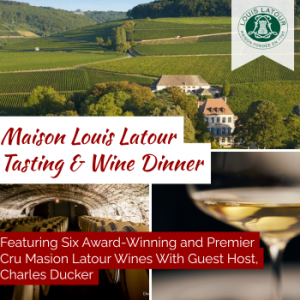 - A Very Special Maison Louis Latour Tasting and Wine Dinner Experience Featuring Six Award-Winning and Premier Cru Masion Latour Wines With Guest Host, Charles Ducker